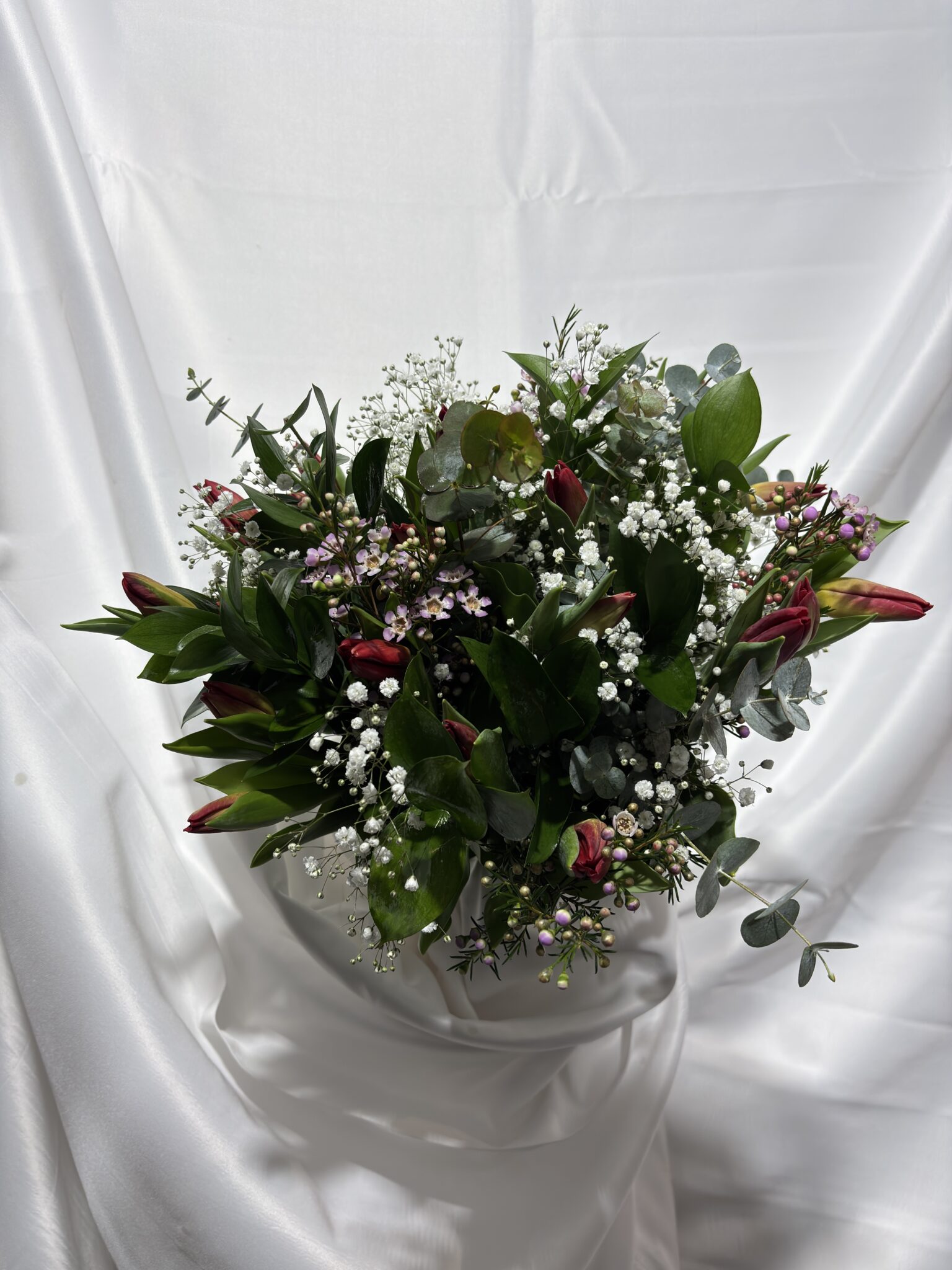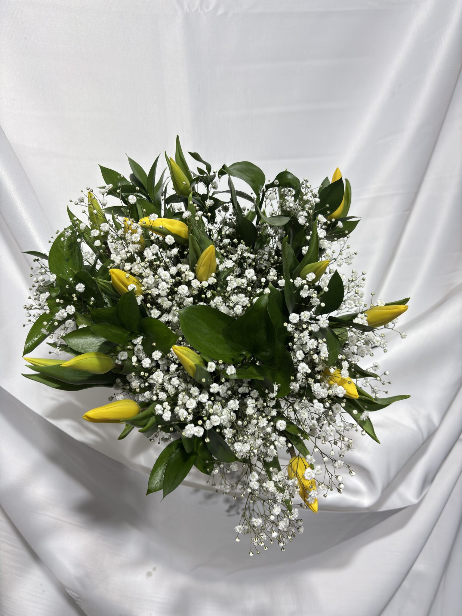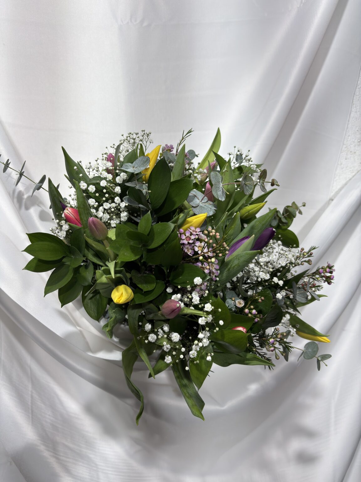 הטוליפים נחשבים לאחד הפרחים האהובים בעולם בזכות הצורה הנקייה והאלגנטית שלהם. השילוב של צבעים שונים יוצר זר שמרגיש חי, צעיר ומלא חיים, בעוד שהגיבסניות והירק מאזנים את המראה ומוסיפים רכות והרמוניה.